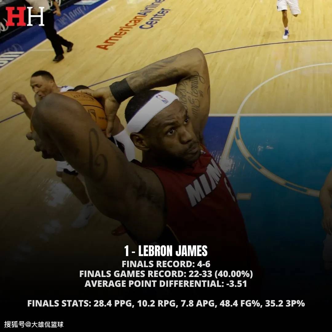 总决赛场均数据:26.4分,13.5个篮板,42.7%投篮命中率