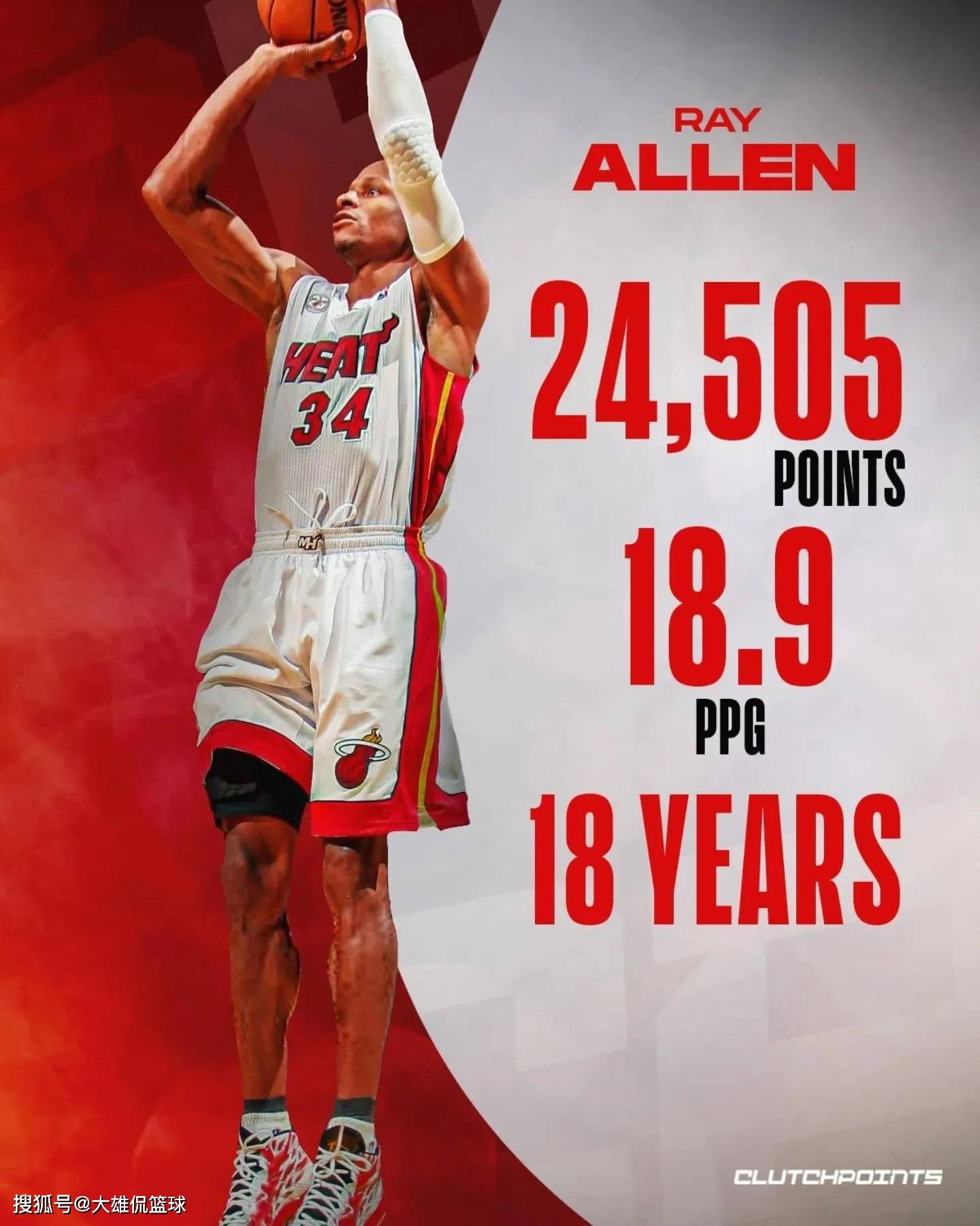 NBA职业生涯18个赛季,场均18.9分,一共拿到了24505分。雷阿伦是NBA历史上最伟大的射手之一,在雄鹿和超音速时期,他都是出色的得分手,加入凯尔特人之后,他的战术地位一直下滑,之后场均得分从两位数,下滑到个位数。
