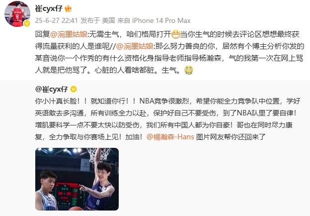 北京时间6月27日,2025NBA选秀大会正式结束,20岁的中国中锋杨瀚森在首轮第16顺位被开拓者选中,崔永熙更新社媒,祝福杨瀚森并分享自己的NBA经验。