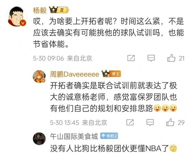 而在选秀大会之前,杨毅又在社媒“指点江山”,称如果有一支球队能在选秀前就给杨瀚森保证,那么这支球队就是篮网,如果能够选中杨瀚森,多年没办的中国赛热度立刻翻倍,篮网和NBA双赢。结果在杨瀚森被开拓者选中后,有网友在评论区发布当时杨毅质疑杨瀚森试训开拓者的截图,后者又厚脸皮地回应:“服吗?像哥们这么准的很少见的。”