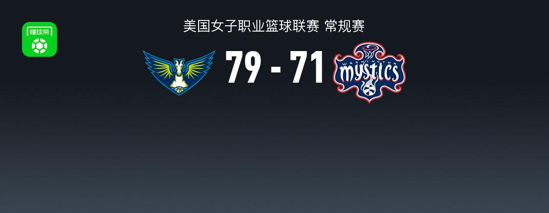 北京时间6月29日美国女子职业篮球联赛 常规赛,达拉斯飞翼对阵华盛顿神秘人。半场飞翼45-31神秘人,最终飞翼79-71神秘人。达拉斯飞翼阿齐亚哈-詹姆斯15分5板1助,昆纳利15分4板4助;华盛顿神秘人索尼娅-西特隆22分10板2助,夏奇拉-奥斯汀18分3板1助。