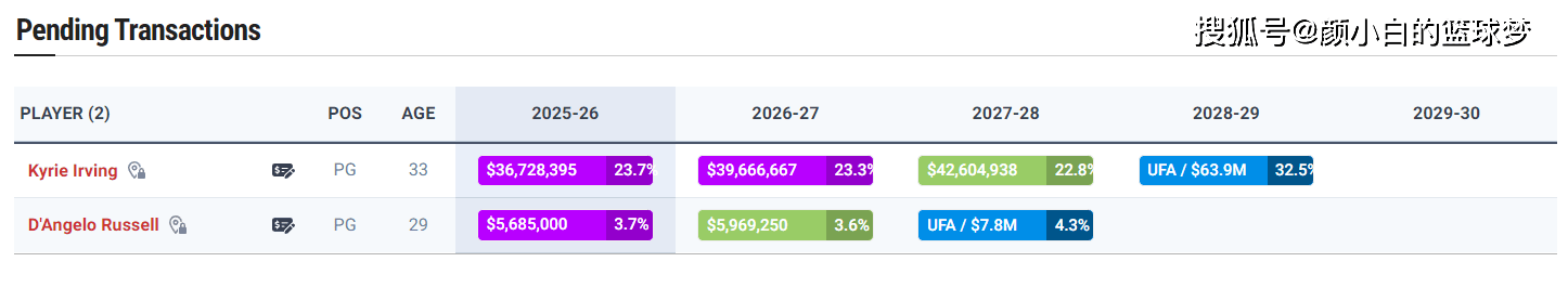 拉塞尔的新合同细节为:25-26赛季568万、26-27赛季596万美元,换言之这份合同的具体金额连1200万都没有超过。