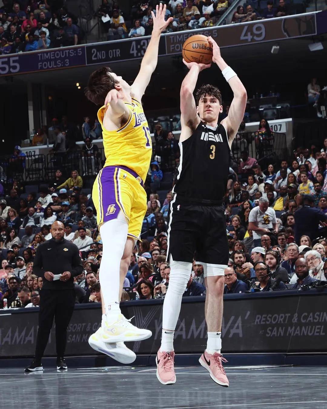 湖人2年1200万美元签约拉拉维亚。他出生于2001年11月3日,身高2米01,2022年的19号秀,生涯三分命中率37.1%。上赛季拉拉维亚在灰熊和国王效力,场均出战20.4分钟,得到6.9分3.9篮板2.4助攻,三分命中率42.3%。