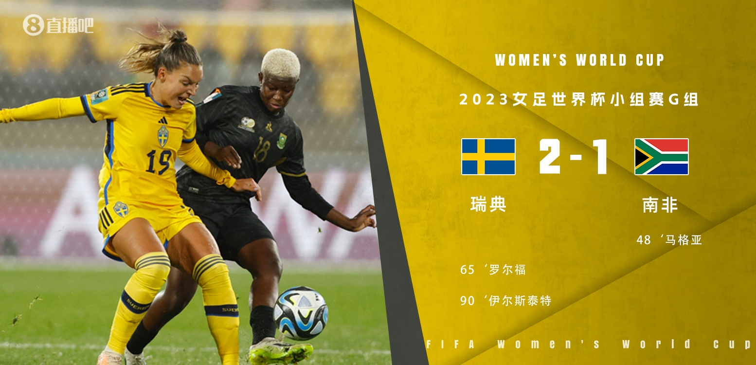 7月23日讯 北京时间7月23日13:00,2023女足世界杯G组首轮,世界排名第3位的瑞典对阵排名第54位的南非。上半场,雷菲勒远距离吊射造险,南非女足球员禁区内疑似手球未被吹罚点球;下半场,玛加亚破门助南非女足取得领先,罗尔福助瑞典女足扳平比分,伊尔斯泰特第90分钟绝杀。最终,瑞典女足2-1艰难击败南非女足,收获开门红。