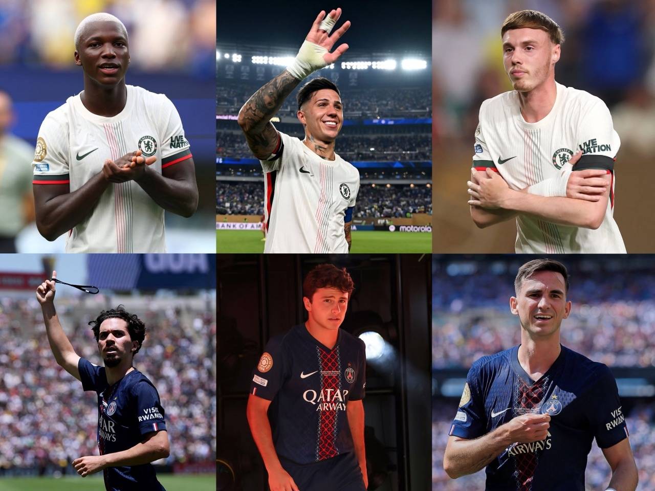 个人观点,切尔西和巴黎的中场或许就是五大联赛里最强了,切尔西vs巴黎,中场对决肯定会非常激烈。但巴黎除了中场,边路也非常犀利,真正的两翼齐飞,门德斯+克瓦拉茨赫利亚(左路),阿什拉夫+杜埃(右路),加上极致高压逼抢的“左右怪”登贝莱,能传能射,有速度有突破。就阵容实力而言,欧冠冠军巴黎比欧协联冠军切尔西更胜一筹,因此也看好巴黎夺得2025世俱杯的冠军。