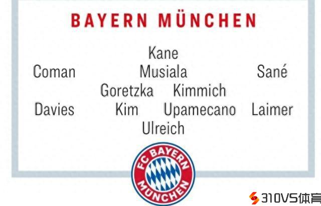 《踢球者》预测拜仁本轮欧冠首发阵容:
