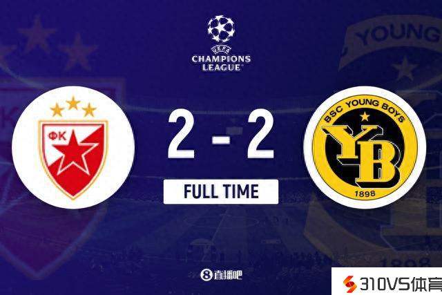 10月5日讯 03:00欧冠小组赛G组第2轮,贝尔格莱德红星主场对阵年轻人。红星率先破门,年轻人连入两球反超,第88分钟红星绝平,最终红星2-2战闰年轻人,两队均积1分排在G组第三四位。