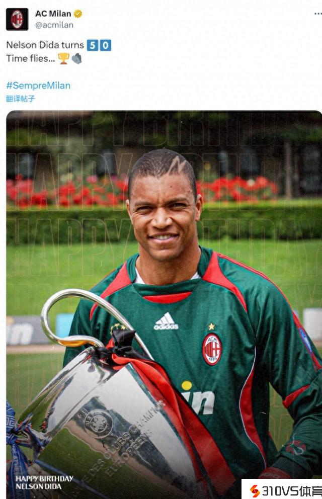 明天是米兰勋绩门将迪达的50岁生日,米兰官方祝他生日快乐。