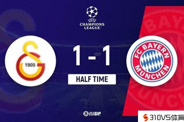欧冠小组赛,加拉塔萨雷半场1-1拜仁。两队半场数据: