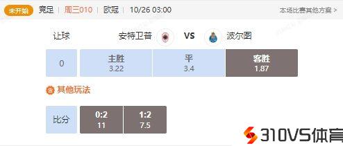 本组的实力差距比拟大,波尔图跟随巴萨出线还是难度不大的,球队也有丰厚的阅历。安特卫普没有太多黑马的迹象,最近阵容和形状也都存在效果。本场看好波尔图顺利击败对手。