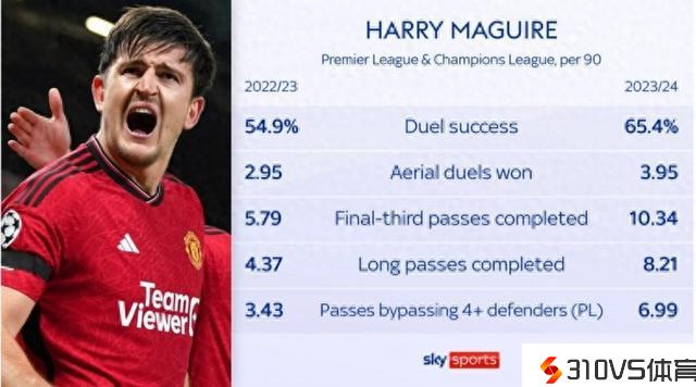 天空体育也清点了马奎尔本赛季与上赛季相比数据变化(英超&欧冠一切竞赛,每90分钟数据),对立成功率等均有清楚提升,以下为详细状况: