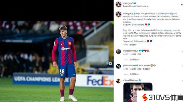 清晨完毕的欧冠,巴萨17岁前锋吉乌替补出场,完成了自己代表巴萨的欧冠首秀。