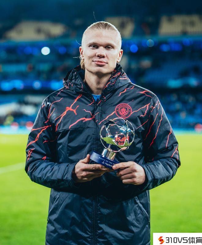 最终经过评选,哈兰德中选欧冠官方全场最佳球员,并在赛后支付奖杯。