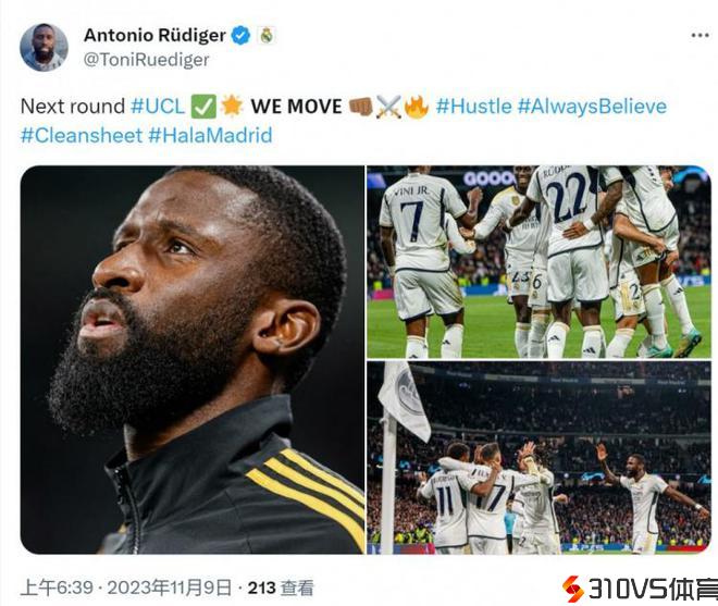 此役事先,皇马以4战全胜的战绩提早晋级16强,吕迪格在社交媒体上晒出竞赛照片,并写道:“进入欧冠下一轮,我们继续行进。”