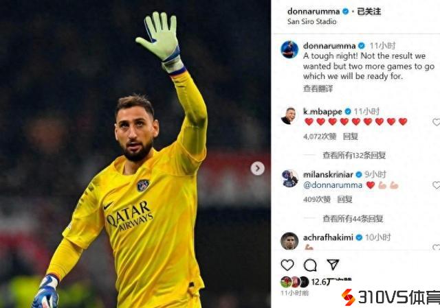 在评论区,姆巴佩、什克和阿什拉夫都鼓舞了多纳鲁马。