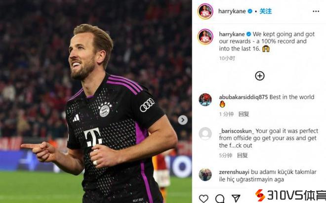 拜仁打败加拉塔萨雷的竞赛中,凯恩演出梅开二度。赛后他在社媒上写道:“我们不时努力,也失掉了奖励。到目前为止坚持全胜,晋级16强。”