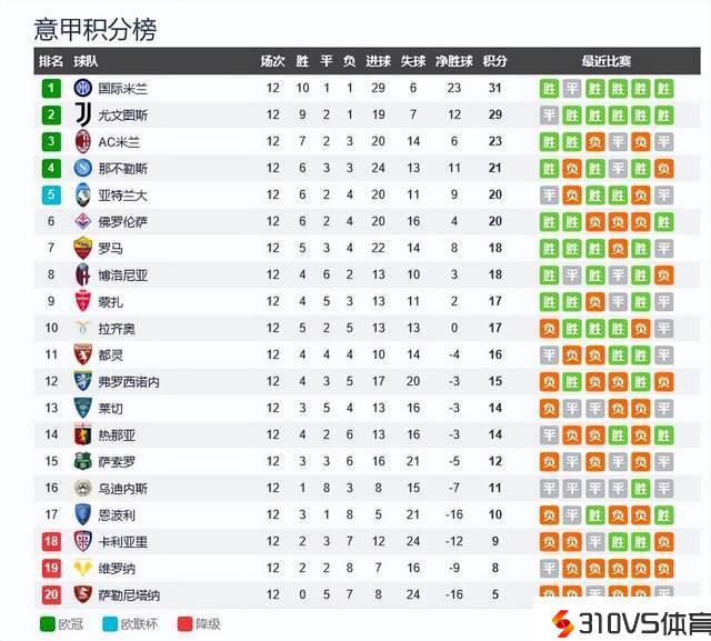 国米第一,但就抢先尤文2分,基本上和上赛季一个时间段的积分差不多