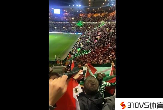 球迷们还在凯尔特人公园球场内展现了两条大横幅,下面写着“束缚巴勒斯坦”和“抵抗运动的成功”。
