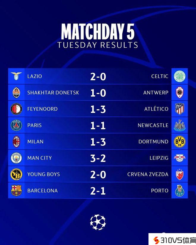 巴黎仰仗98分钟压哨点球1-1绝平纽卡,多特蒙德3-1击败米兰,率先从死亡之组包围。费耶诺德1-3马竞,拉齐奥2-0凯尔特人,马竞、拉齐奥携手晋级。