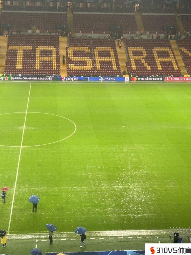 记者表示,目前加拉塔萨雷的主场状况看起来很蹩脚。明天,伊斯坦布尔下了一整天的大雨,目前看来没有雨停的迹象。许多竞赛官员曾经进入场地停止反省。