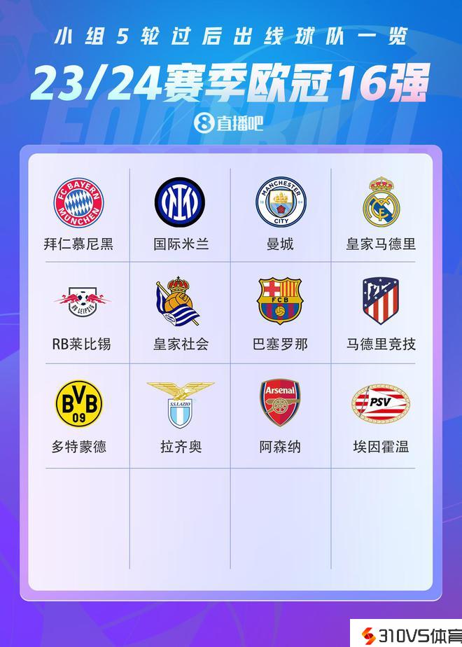 欧冠16强抽签将于12月18日停止,1/8决赛将在明年2月开打。