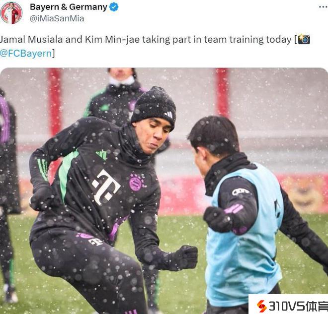 据拜仁官方发布的音讯,穆西亚拉和金玟哉明天参与了拜仁的合练。