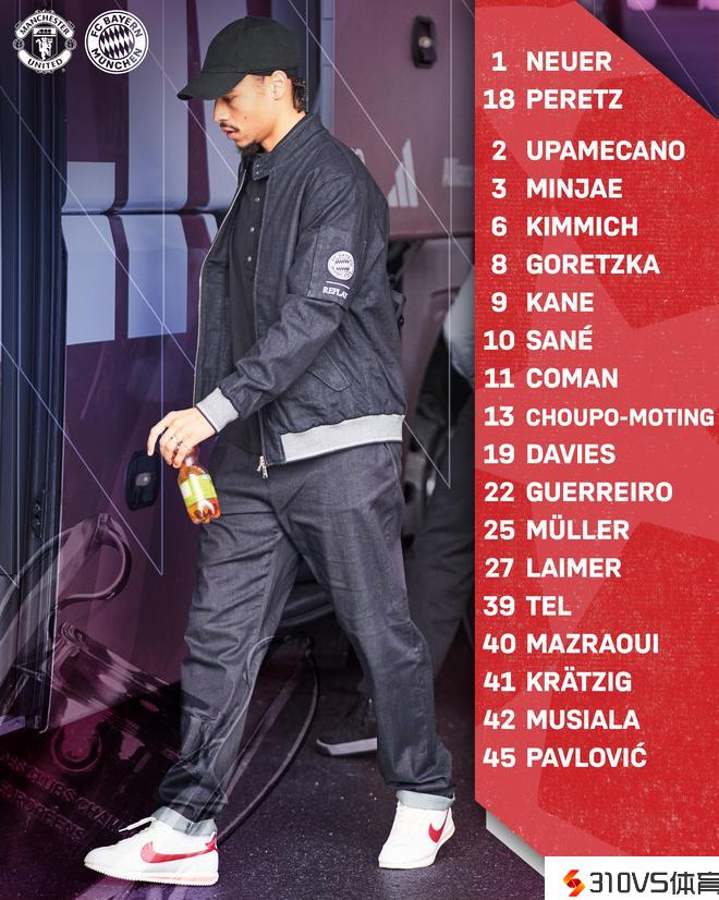 拜仁欧冠客战曼联大名单