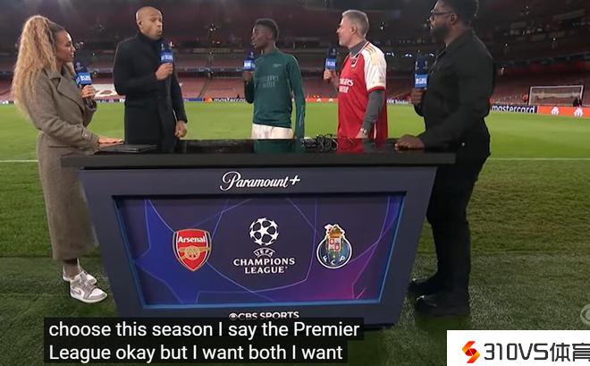 阿森纳点球大战淘汰波尔图,亨利赛后采访了萨卡和拉亚,让他们在欧冠和英超冠军之间做出选择。