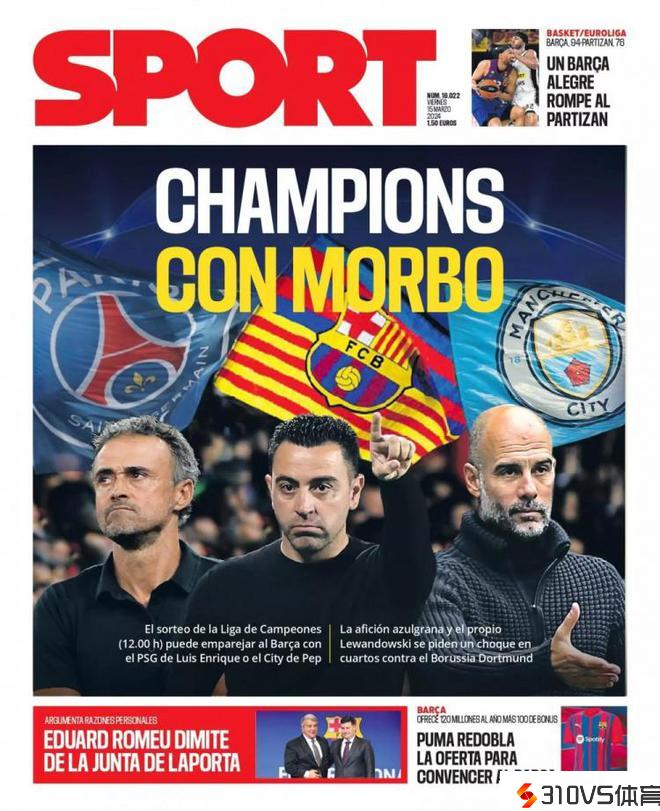 《每日体育报》昔日头版,巴萨能够在欧冠与瓜迪奥拉或恩里克重逢。