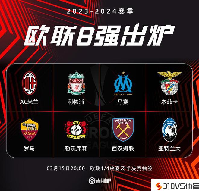 其中,目前排名德甲第一的勒沃库森、英超第二的利物浦以及意甲第二米兰、意甲第五罗马等强队将参与欧联1/4决赛抽签。