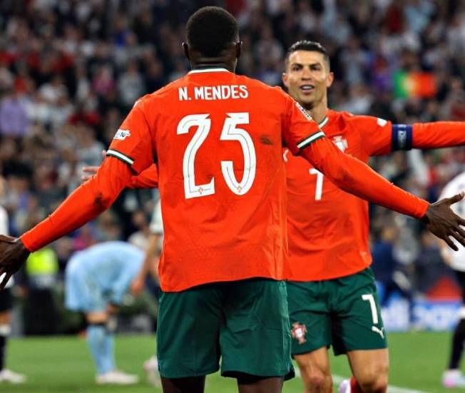 欧国联决赛,葡萄牙点球大战力克欧洲杯冠军西班牙,再次拿到欧国联的冠军。这场比赛西班牙2次取得领先,但是被葡萄牙2次扳平,而这两次进球都有大巴黎左后卫努诺门德斯的参与,先是在比赛第26分钟禁区内远射得手帮助球队扳平比分,然后在比赛下半场为C罗送出助攻,帮助球队再次扳平比分,赛后努诺门德斯也成功当选了决赛MVP,成为了全场最佳球员。