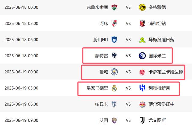 接下来,国米、皇马和曼城都将出战,他们首轮比赛的对手分别是蒙特雷、利雅得新月和卡萨布兰卡,不出意外的话,这3大豪门都将击败对手。从目前来看,本届世俱杯,冠军将在大巴黎、拜仁、切尔西、国米、曼城和皇马这6大豪门当中产生。虽然弗拉门戈和帕尔梅拉斯等球队,都是历史悠久的南美豪门,但是他们与欧洲强队相比,实力差了不只一个档次,更别提其他球队了。