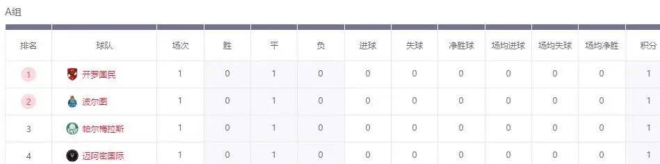 此前ABCD4个小组已经结束了第1轮比赛,但是8场比赛中,8队没有进球,A组方面,4队全是0进球0丢球,全是1分。揭幕式中,世界球星梅西领衔的迈阿密热队0-0打平开罗国民,未进1球,而C组德国豪门拜仁随后10-0大胜业余球队奥克兰城,比赛过程更像是一场训练赛。另外,东道主3支球队首轮也是一胜难求,迈阿密热队0-0打平开罗国民,西雅图海湾人1-2输给博塔弗戈,洛杉矶FC0-2输给切尔西。
