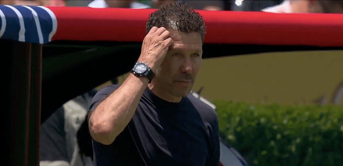 上半场的补时阶段,阿尔瓦雷斯第三次倒在了禁区内,场边的西蒙尼已经怒不可遏,示意对方球员有明显的犯规动作。