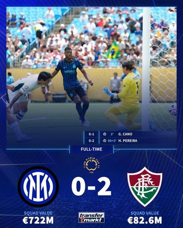 国米总身价高达7.4亿欧元,弗鲁米嫩塞则是8265万欧元,几乎是巴西劲旅的9倍,甚至还不及劳塔罗一人的9500万欧元,赛前更多人以为国米有望轻松晋级。