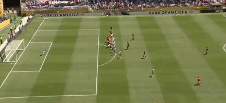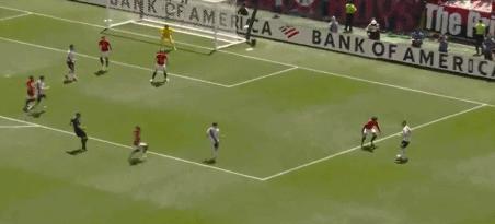第9分钟,差一点,德留西射门击中立柱弹出