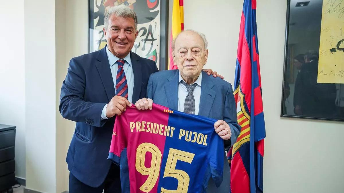 据西班牙《每日体育报》报道,本周二拉波尔塔在巴萨主席办公室接待了加泰罗尼亚自治区前主席普约尔的来访,为其庆祝95 岁生日。