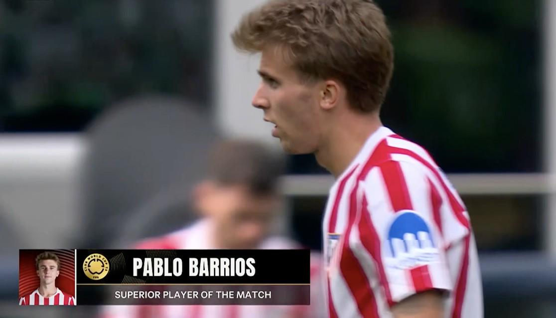 2025年世俱杯小组赛第二轮,马德里竞技3-1击败西雅图海湾人,此役上演梅开二度的马竞中场巴勃罗-巴里奥斯当选世俱杯官方全场最佳球员。