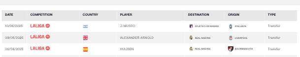 不过,他的加盟并未像穆索加盟马竞、赫伊森和阿诺德加盟皇马那样出现在西甲官网的“转会”栏目中。
