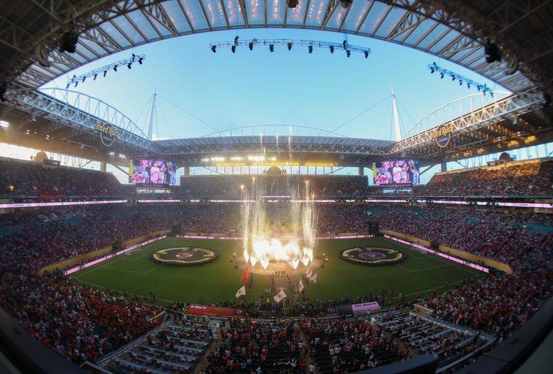 这是6月14日拍摄的2025年国际足联俱乐部世界杯(世俱杯)揭幕战入场仪式现场。新华社记者 徐子鉴 摄