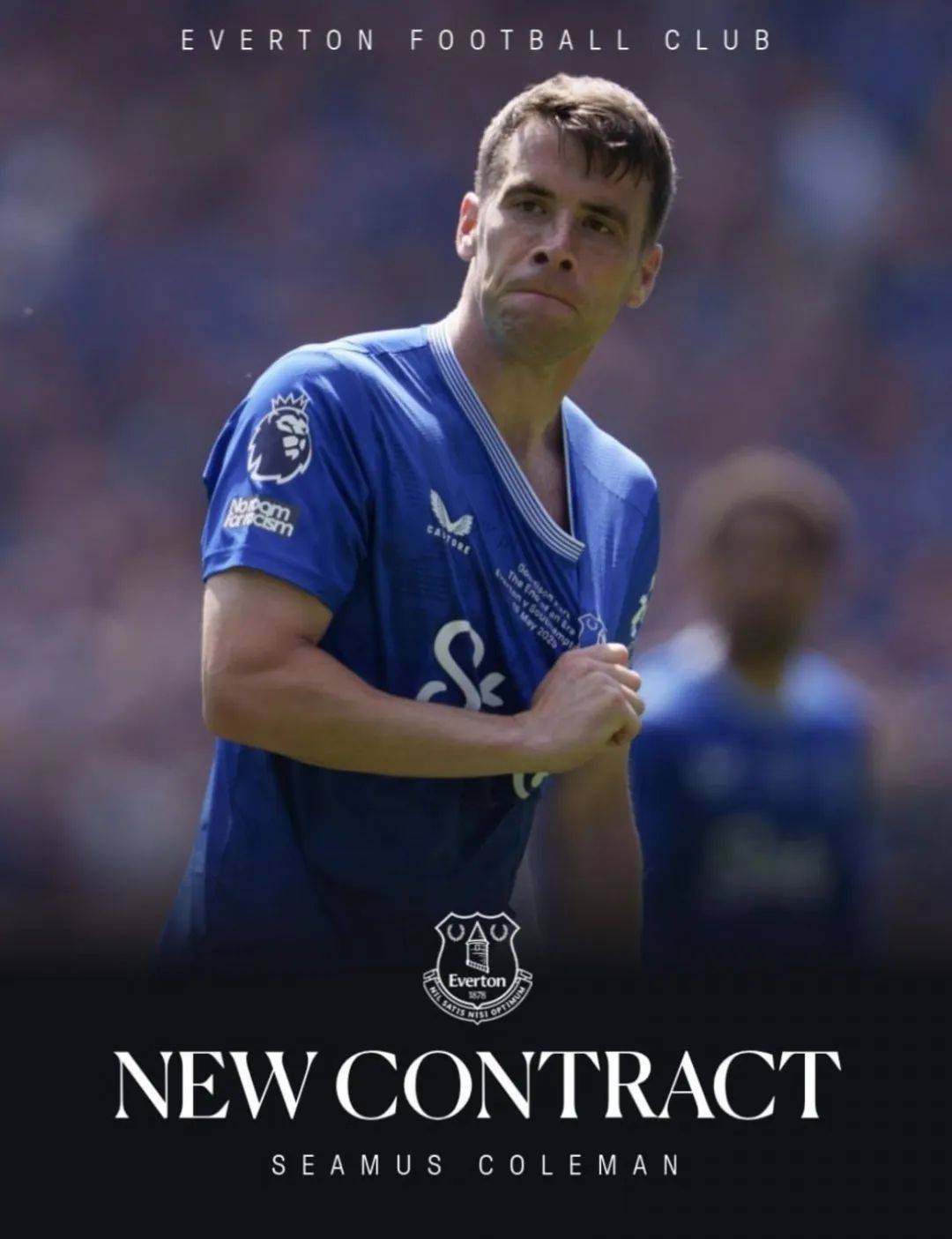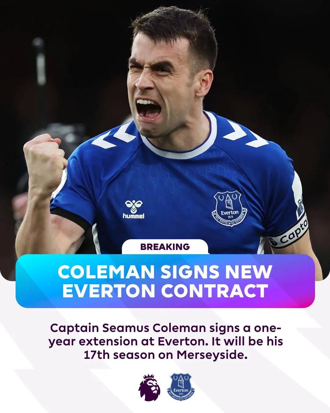 英超球队埃弗顿官方宣布,俱乐部队长,36岁爱尔兰国脚右后卫科尔曼,已经与俱乐部续约一年。