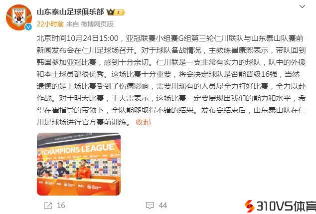 同时赵成焕也表示他经过看山东队的竞赛视频,了解到崔教练将他在韩国执教时的战术战略植入到了球队,我们会做足预备来赢得竞赛。崔康熙和赵成焕可以说是老冤家,两人曾在全北现代一同同事,此役必将是一场精彩竞赛。