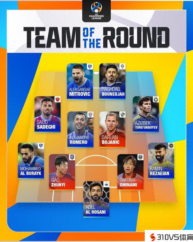 中场:赛义德-萨德希(波斯波利斯)、亚历杭德罗-罗梅罗(艾因)、博扬尼奇(蔚山现代)、图尔贡博耶夫(塔什干棉农)