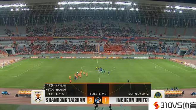 亚冠小组赛,泰山3-1击败仁川联,小组赛背靠背双杀对手,并掌握了小组出线的自动权。
