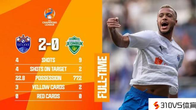 日夫科维奇在竞赛第23分钟和55分钟先后取得进球,全北前锋古斯塔沃则在第90分钟罚丢点球,最终狮城水手主场2-0打败全北现代,目前和全北同积6分,少赛一场的曼谷联则以9分领跑。