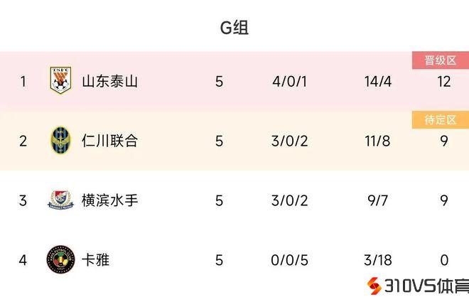 原本以为12分就能稳出线,可搅局的来了,仁川联主场2比1打败横滨水手,小组前三区分为山东泰山12分、仁川联9分,横滨水手9分。这意味着,即使是积12分的山东泰山照旧有小组出局的能够。末轮山东泰山客场对阵横滨水手,仁川联对阵卡雅FC,仁川联客场打败小组赛5连败的卡雅FC效果不大,有望拿到12分,而山东泰山假设输给横滨水手,那么横滨水手、山东泰山和仁川联同积12分,此时需求看三队之间的胜负关系,经过计算,山东泰山只需不输4球及以上,即可晋级。
