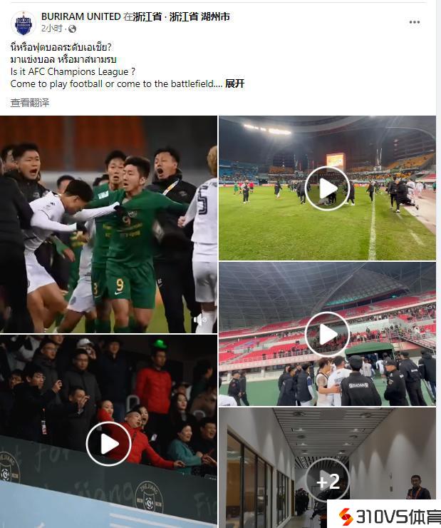昨晚亚冠小组赛浙江3-2武里南联赛后,两队迸发抵触,武里南官方社媒昔日更新静态,晒出被浙江殴打视频,并写道:“这是亚冠?踢球还是打架?”
