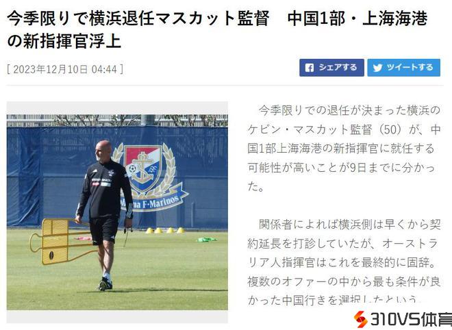 据《体育日本旧事社》报道,与横滨水手合约到期的主教练凯文-马斯卡特将成为上海海港的新任主教练。