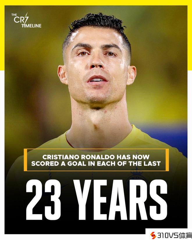 这粒进球也是39岁的C罗在2024年的首球,自从2002年起,他曾经延续23个自然年取得了进球。