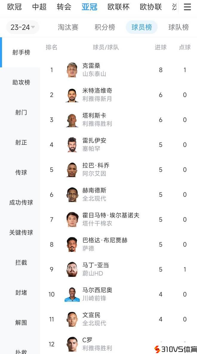 02月20日讯 亚冠1/8决赛次回合,山东泰山4-2打败川崎前锋,总比分6-5晋级亚冠八强。泰山前锋克雷桑本场梅开二度,本赛季亚冠8场8球,领跑亚冠射手榜。